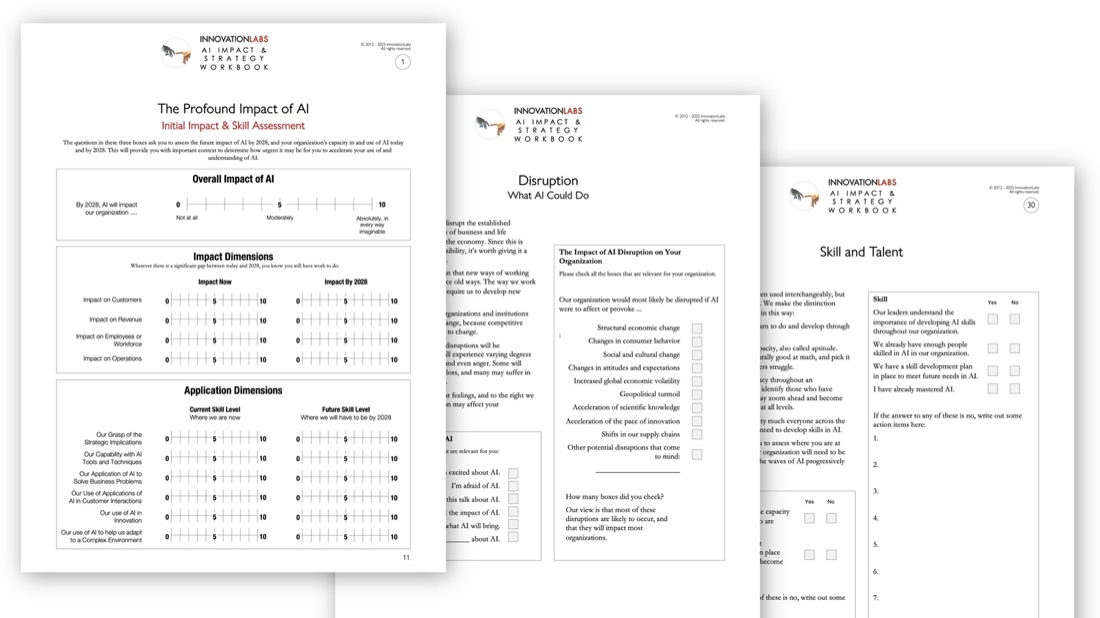 In addition to our two recent books, The AI Nation and The AI Future, we’ve created a highly detailed workbook that poses the critically important questions that you need to ask yourself as you begin to prepare for the consequences of AI for yourself and your organization.